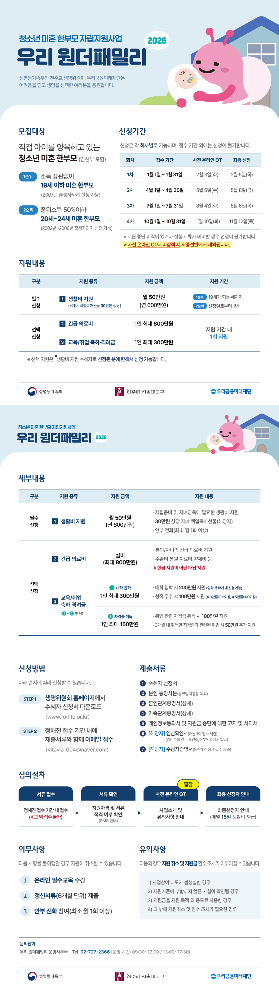 우리원더패밀리 - 청소년 미혼 한부모 자립지원사업 수혜자 신청