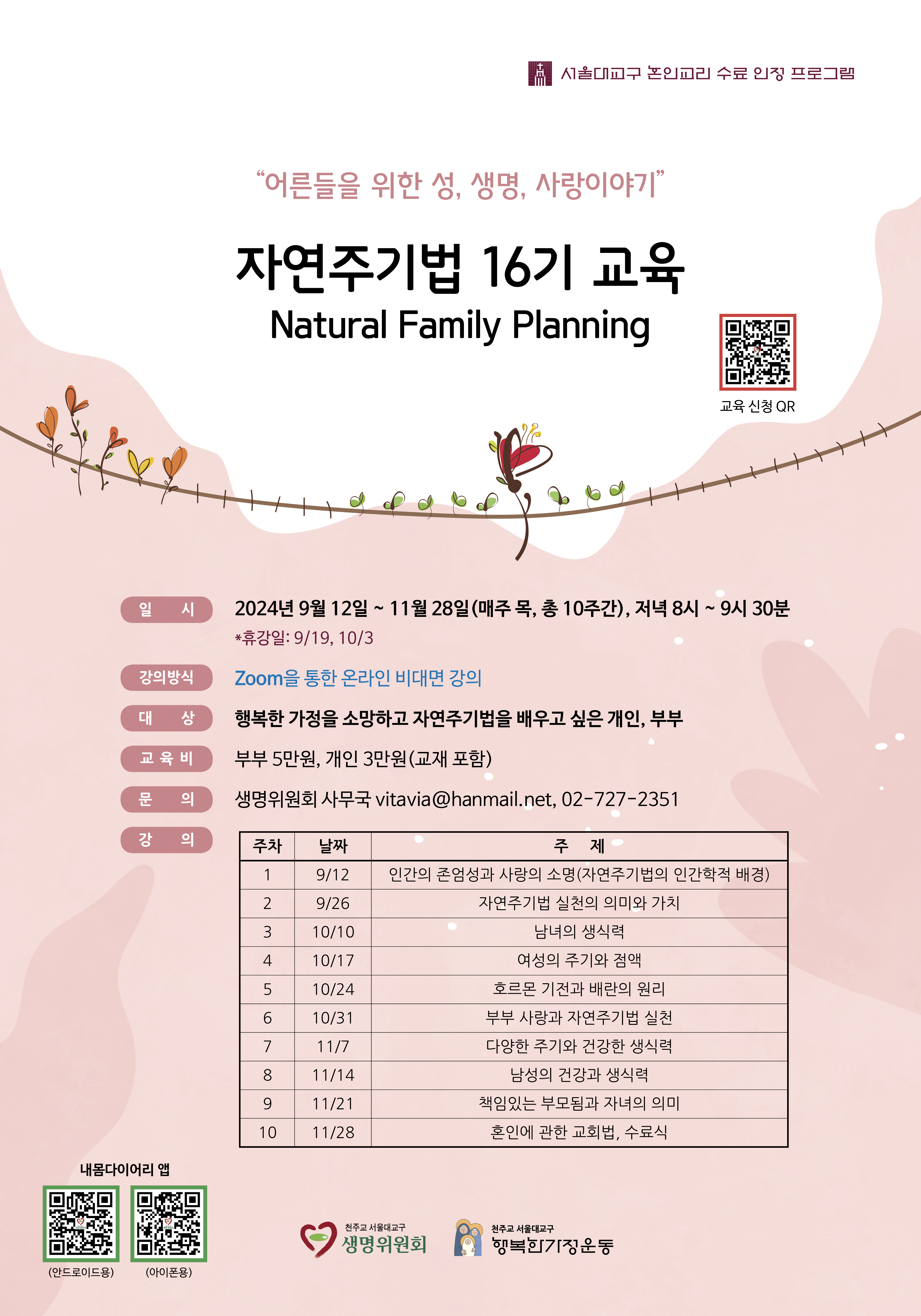 자연주기법(NFP) 16기 교육(9/12~11/28)