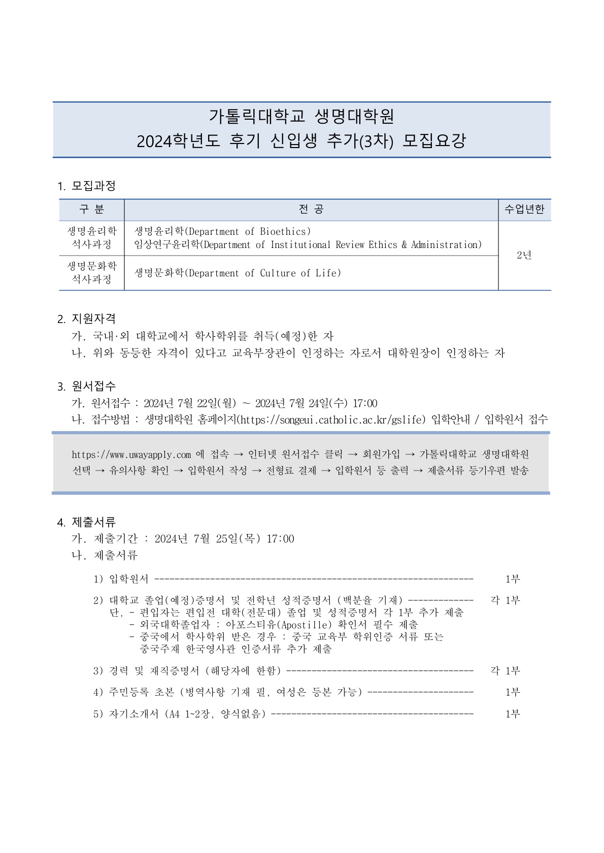 [생명대학원] 2024년 후기 신입생 모집 추가(3차) 모집