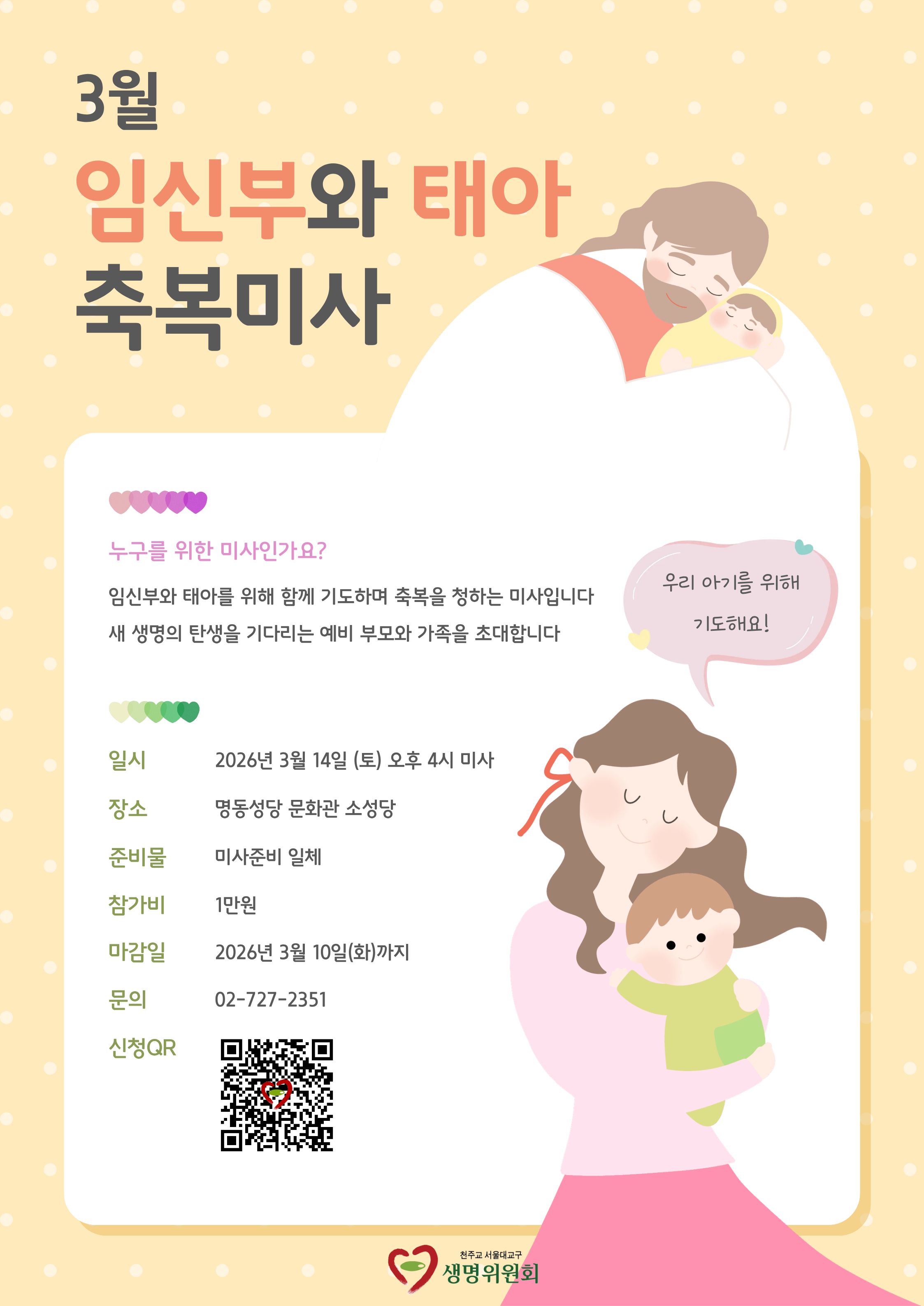 2026년 3월 임신부와 태아 축복미사 신청 안내